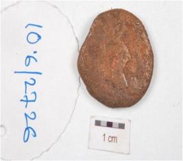 | Description / विवरण | A copper coin, round in shape, image of standing male depicted on obverse side and standing made with left hand raised depicted on reverse side, chemically treated and preserved, made by cast technique. |