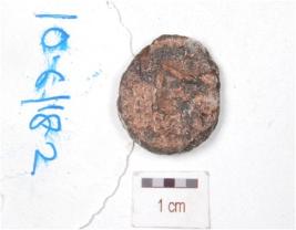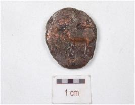 | Description / विवरण | A copper coin, round in shape, defaced image on obverse side and reverse side, chemically treated surface and preserved, made by cast technique. |