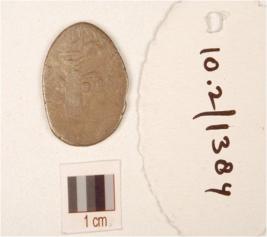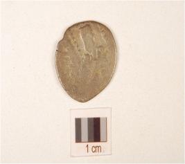 | Description / विवरण | A round shaped silver coin, images are not clearly visible on reverse and obverse side, tarnished surface. |