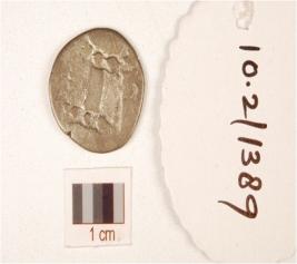 | Description / विवरण | A round shaped silver coin, having figure of animal on obverse and reverse side, tarnished surface. |