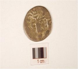 | Description / विवरण | A round shaped silver coin, figure of animal on obverse side and indeterminate image on surface side, tarnished surface. |
