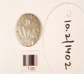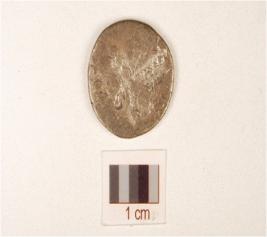 | Description / विवरण | A round shaped silver coin, having indeterminate image on obverse and reverse side, tarnished surface. |