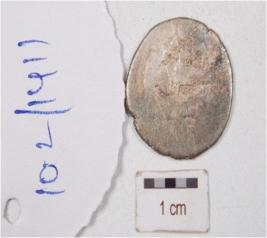 | Description / विवरण | A sliver coin, round in shape, having tree motif on one side another side having dotted design and irregular edge. |
