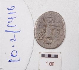 | Description / विवरण | A silver coin, round in shape, having tree motif on one side surface another side surface is not clear and tarnished surface. |