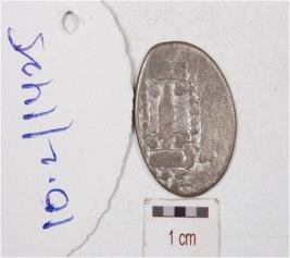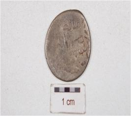 | Description / विवरण | A silver coin, irregular roundish in shape, having tree motif on one side surface, and another side unidentified image depicted. |