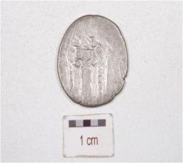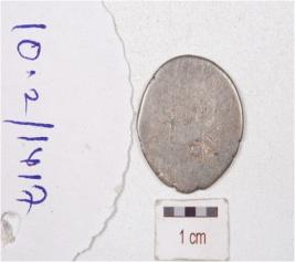 | Description / विवरण | A silver coin, round in shape, having unidentified image on one side surface another side is defaced and tarnished surface. |