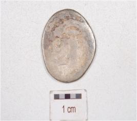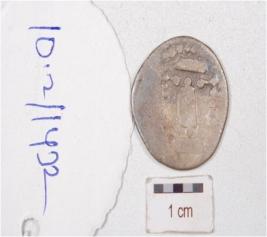| Description / विवरण | A silver coin, round in surface, having unidentified motif depicted on both side surface and tarnished surface. |