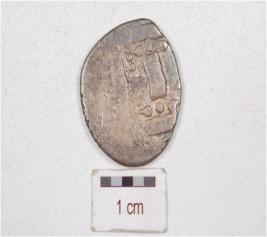 | Description / विवरण | A silver coin, round in shape, having tree modif on one side surface, unidentified modif depicted on other side surface. |