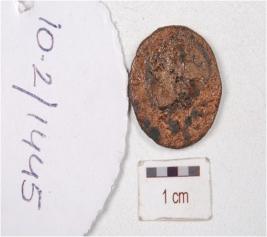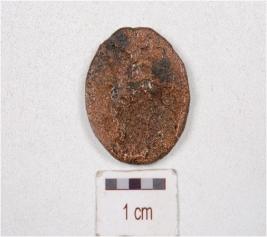 | Description / विवरण | A copper coin, round in shape, image is not clearly visible, surface is chemically treated and preserved. |