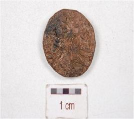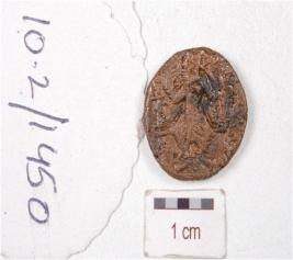 | Description / विवरण | A copper coin, round in shape, image on deity on surface, surface is chemically treated and preserved. |