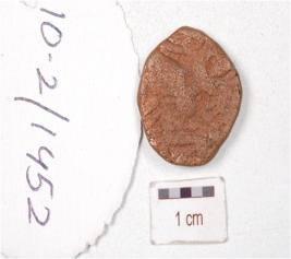 | Description / विवरण | A copper coin, round in shape, human figure on both side, surface is chemically treated and preserved. |
