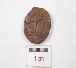| Description / विवरण | A copper coin, round in shape, animal figure on both side, surface is chemically treated and preserved. |