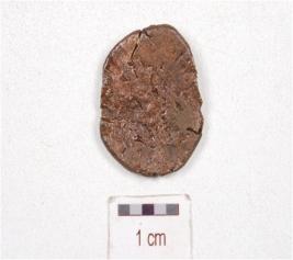 | Description / विवरण | A copper coin, round in shape, cracks on edges, surface is not clearly visible, surface is chemically treated and preserved. |