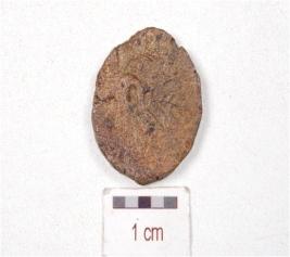 | Description / विवरण | A copper coin, round in shape, human figure on one side, surface is chemically treated and preserved. |