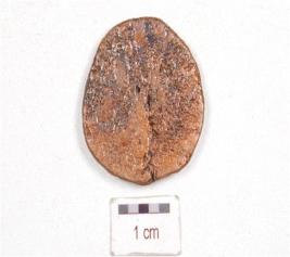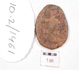 | Description / विवरण | A copper coin, round in shape, cracks on edge, a seated human figure on one side, surface is chemically treated and preserved. |
