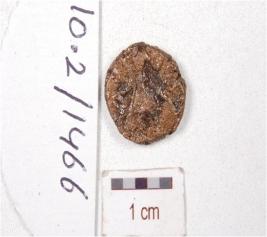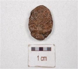 | Description / विवरण | A copper coin, round in shape, human figure on both sides, surface is chemically treated and preserved. |