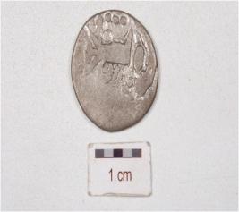 | Description / विवरण | A die struck silver coin, circular in shape, an animal motif on one side, other unreadable motif on both the sides and eroded surface. |