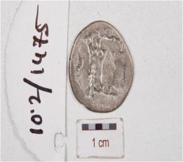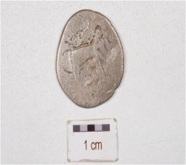 | Description / विवरण | A die struck silver coin, circular in shape, motif on both the sides and eroded surface. |