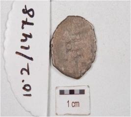 | Description / विवरण | A die struck silver coint, circular in shape, unreadable motif on both the sides, eroded surface and uneven periphery. |