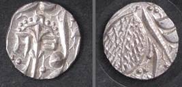 | Description / विवरण | Descrpn./Obv In the centre, a chhatra with Sa and Ta in Gurumukhi script on the left and right of its shaft; traces of the Persian legend seen on the obverse of the bigger Nanakshahi coins of Amritsar mint are also seen. Descrpn./Rev Big peepal leaf and traces of the Persian legend seen on the reverse of the bigger Nanakshahi coins of Amiritsar mint - Shri Amritsarjiv zarb [VS Year] Takht maimanat julus manus Akal Bakht. Especially traces of alif of Akal and te of Takht and maimanat are seen |