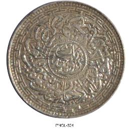 | Description / विवरण | Obverse Nizam-ul-Mulk Asif Jah Bahadur 1323 F Reverse San Julus Maimanat-e-Manus, Zar-e-Farkhanda Bunyad, Hyderabad, Ek Rupia. |
