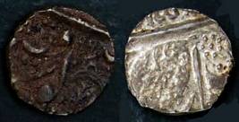 | Description / विवरण | Descrpn./Obv In the centre, a chhatra with Sa and Ta in Gurumukhi script on the left and right of its shaft; traces of the Persian legend seen on the obverse of the bigger Nanakshahi coins of Amritsar mint are also seen. Descrpn./Rev Big peepal leaf and traces of the Persian legend seen on the reverse of the bigger Nanakshahi coins of Amiritsar mint - Shri Amritsarjiv zarb [VS Year] Takht maimanat julus manus Akal Bakht. Especially traces of alif of Akal and te of Takht and maimanat are seen |