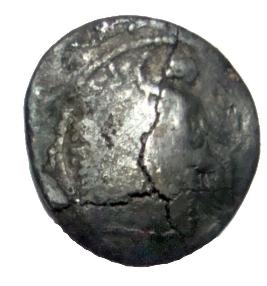 | Description / विवरण | Circular silver Roman coin with horizontal cut mark. Obverse Laureate head to right, V Ti Caesar DIVI XI Aug F Augustus.orizontal cut mark. Reverse Livia seated to right on a chair holding inverted spear, IV pontiff X Maxim. |