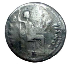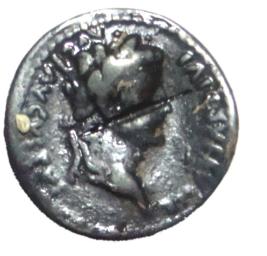 | Description / विवरण | Circular silver Roman coin with Horizontal cut mark. Obverse Laureate head to right. V Ti Caesar DIVI XI Aug F. Augustus. Horizontal cut mark. Reverse Livia seated right on chair holding inverted spear IV pontiff X maxim. |