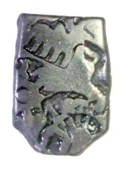 | Description / विवरण | Obverse Sun, four arrows and four Taurine symbols alternatively shown around the disc, man holding sword and shield, bull with horns, Donkey Reverse Blank. |