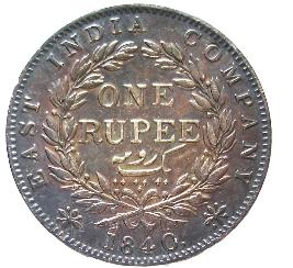 | Description / विवरण | Lot No. 2 1996 Circular silver coin with legends on both sides. Obverse Queen facing left. Reverse 1 rupee, ek rupiya in Persian language, within a foliage circle, East India company 1840, within a dotted border. |