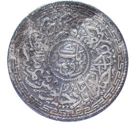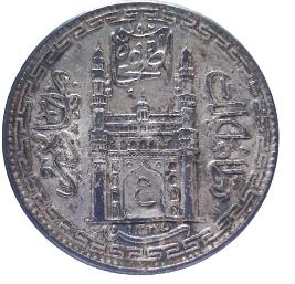 | Description / विवरण | Lot No. 11 1992 Circular silver coin with legends on both sides. Obverse Nizam-ul-Mulk Asif Jah Bahadur 1337 F. Reverse San Julus Mainanat-e-Manus Zarb-e- Farkhanda Bunyad, Hyderabad. Ek Rupia. |