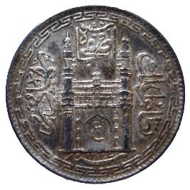 | Description / विवरण | Lot No. 11 1992 Circular silver coin with legends on both sides. Obverse Nizam-ul-Mulk Asif Jah Bahadur 1337 F. Reverse San Julus Maimanat-e-Manus Zarb-e- Farkhanda Bunyad, Hyderabad. Ek Rupia. |