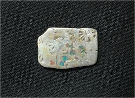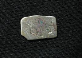 | Description / विवरण | The rectangular shaped coin depicts sun, an unidentified symbol in the obverse and different type of indistinct symbols in the reverse. |