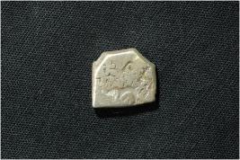 | Description / विवरण | The squre shaped coin depicts six armed and an unidentified symbol in the obverse and various symbols in the reverse |