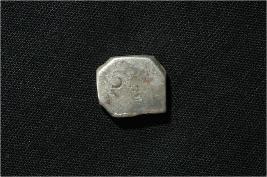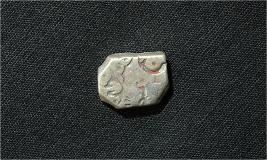 | Description / विवरण | The squre shaped coin depicts three picked hill with cresent at the top,sun,six armed in the obverse and minute marks are visible in the reverse. |