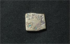 | Description / विवरण | The squrer shaped coin depicts sun, six armed, three picked hill in the obverse and two unidentified symbols in the reverse. |
