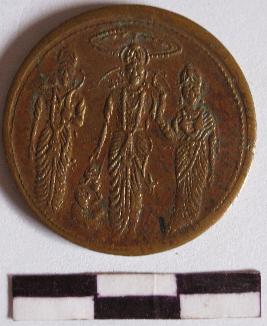 | Description / विवरण | The half anna coin was used during the rule of East-India Company. The obverse of the coin shows image of Lord Rama in the centre, holding his bow in the left hand and right hand rests on the Hanumana s head. Sita and Lakhsmana is also visible beside the Rama . They are highly ornamented. Hanumana in seated posture is also visible beside Rama . East India Company and year 1818 has been depicted of the reverse of the coin. |
