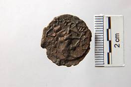 | Description / विवरण | Obverse- Bull to right before a tree in railing and Ujjain symbol above it, the bull is shown on an arched hill. Reverse- Bull to left before a Jayadhvaja. |