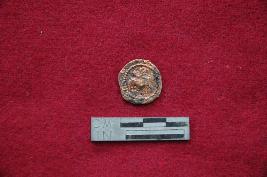 | Description / विवरण | A round shaped copper coin having a symbol of a standing bull within a border on obverse and reverse is unclear. |