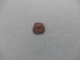 Copper coin with a human figure in standing position is depicted on the obverse.
