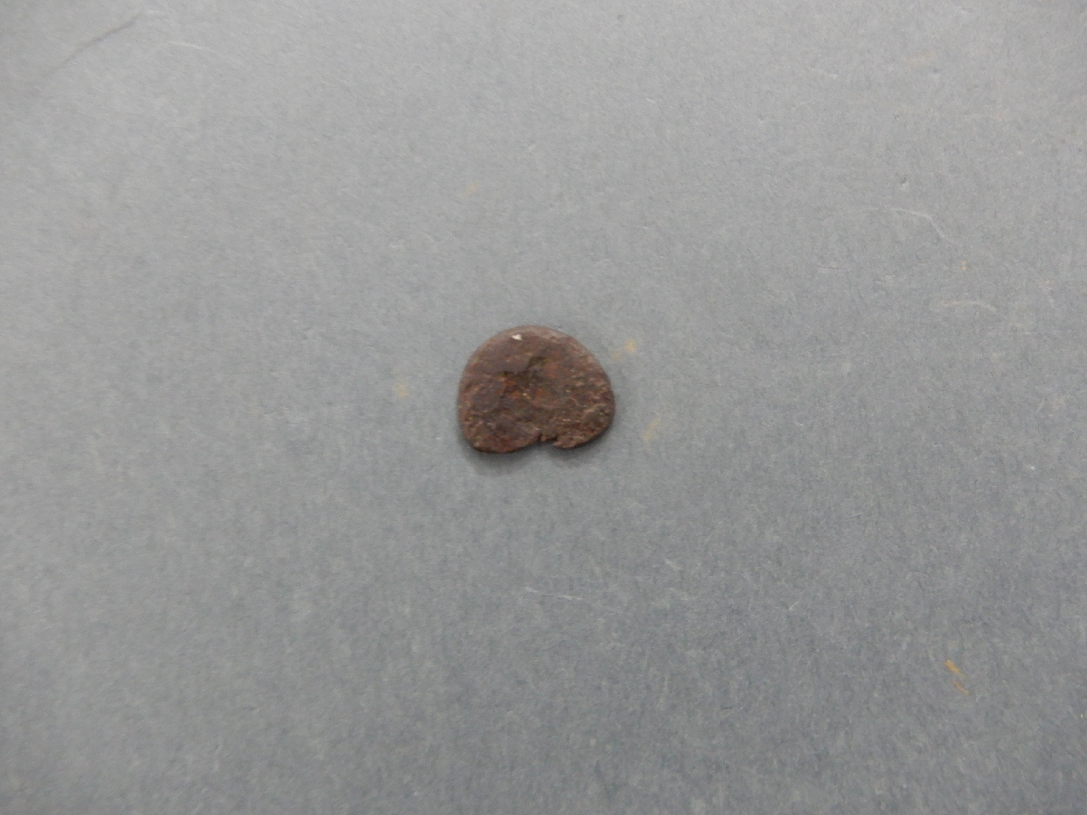 Featureless broken copper coin.