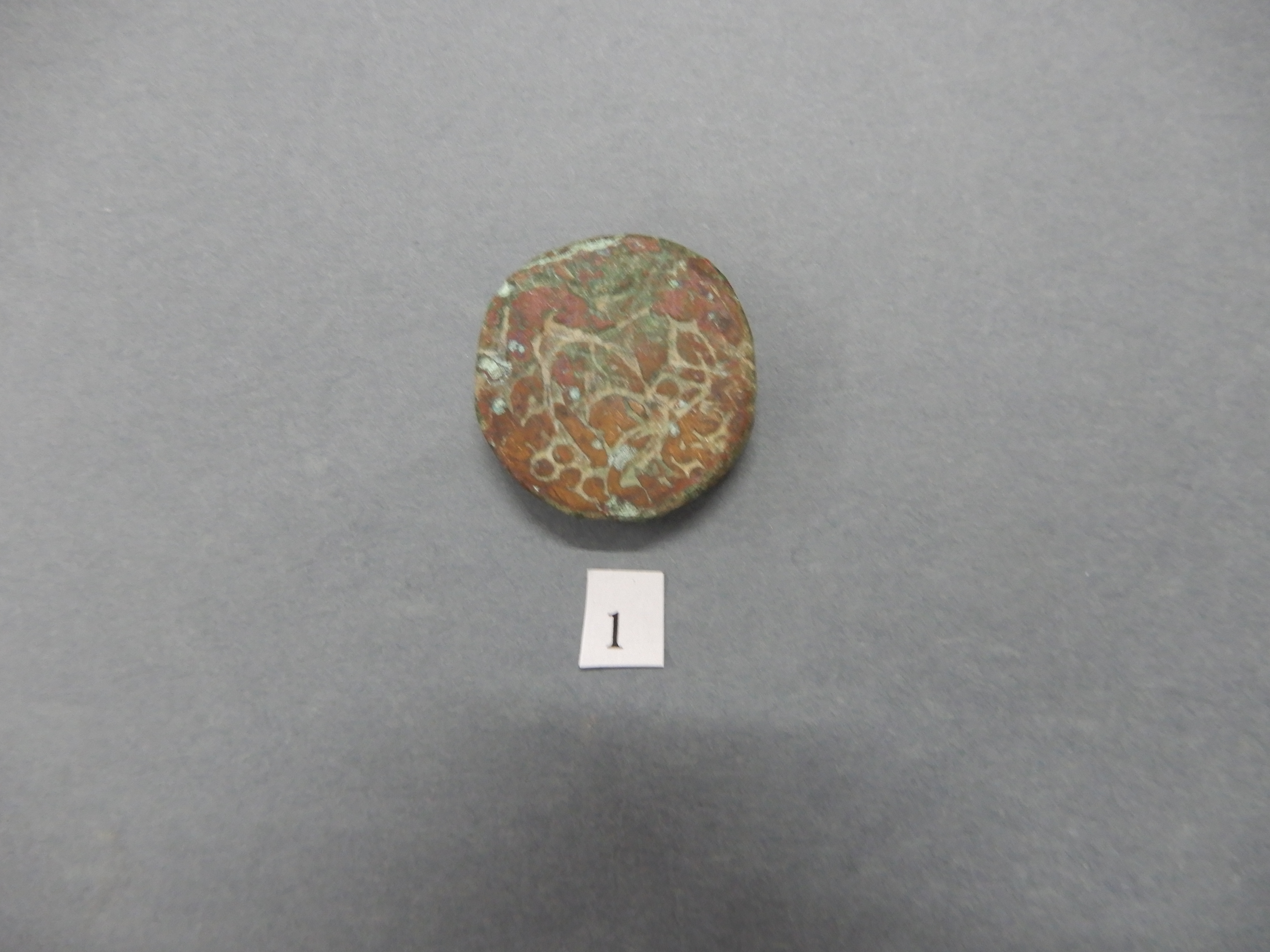 Thick circular copper coin.