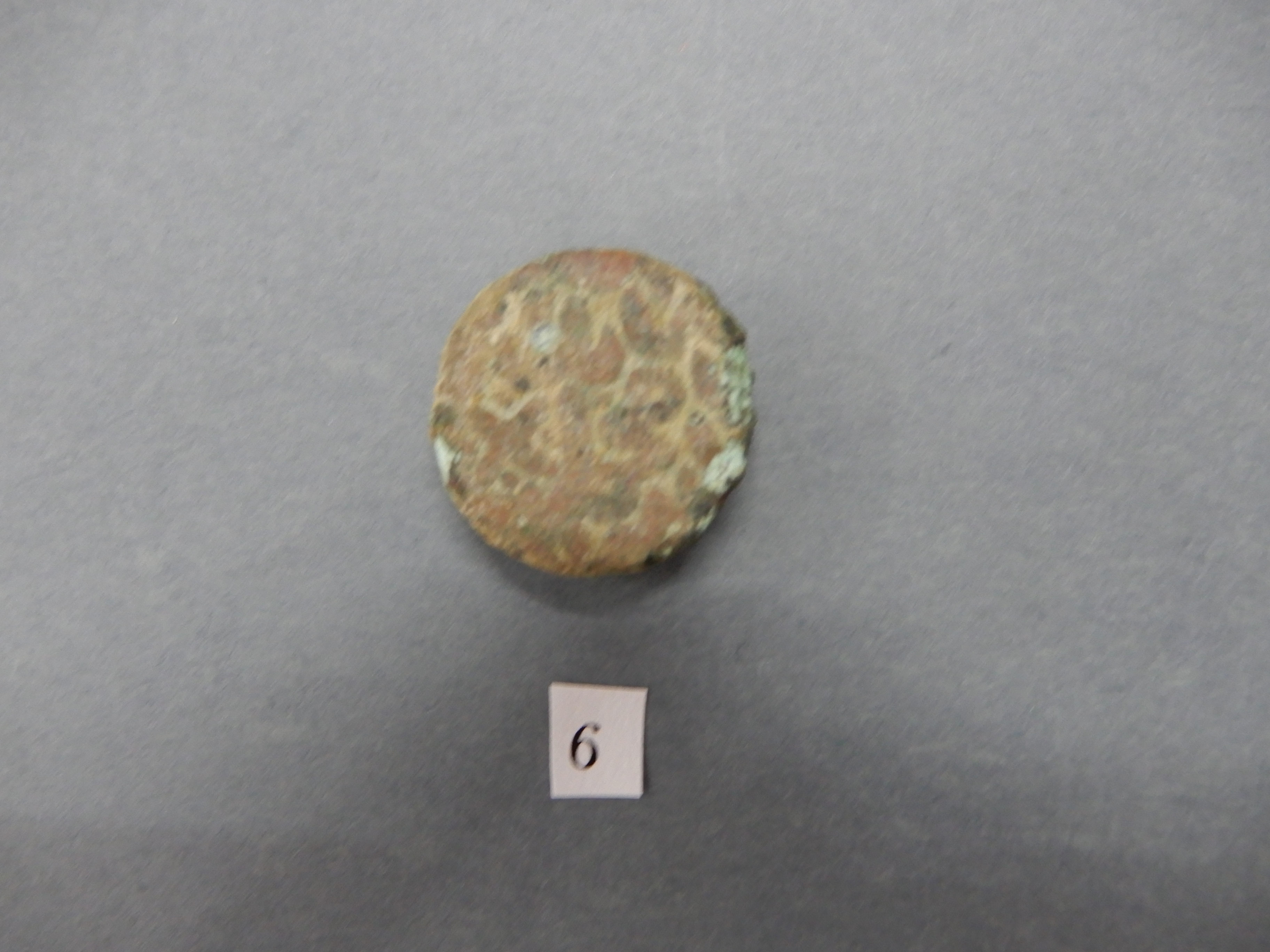 Thick circular copper coin.