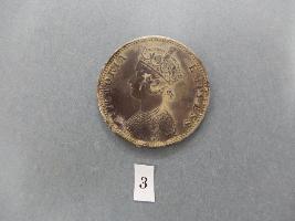 Big circular one rupee India coin, 1900 AD. Queen Victoria.