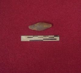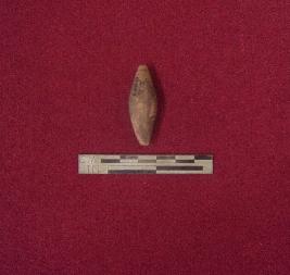 | Description / विवरण | Terracotta long barrel circular bead; etched with marginal bands on both sides |