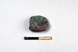 | Description / विवरण | A fragment of copper coin, it is rectangular in shape and the surface is incrusted. No symbol and script is traceable due to heavy incrustation. |