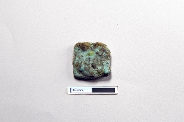 | Description / विवरण | Heavily incrusted square shaped copper piece, probably representing a copper coin. |