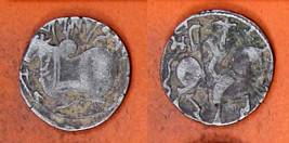 | Description / विवरण | Descrpn./Obv Recumbent bull facing left, wearing jhula (saddle cloth), with trisula (trident) symbol on rump. Above, legend in Sarada script Sri Samantadeva . Descrpn./Rev Rider with lance on caparisoned horse facing right. On left, Sarada letter bhi and on right, Sarada letter ta |