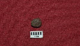 | Description / विवरण | Irregular shaped round coin, symbols are not clear but one side of the coin have leaf like design. |
