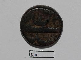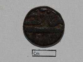 | Description / विवरण | A round copper coin with legends in Persian script |